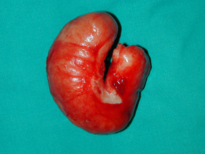 Φωτογραφία του χειρουργικού παρασκευάσματος που αφαιρέθηκε με δεξιά θωρακοτομή.Πρόκειται για όγκο του οισοφάγου δίκην πετάλου αλόγου. Η ιστολογική εξέταση έδειξε ότι πρόκειται για λειομύωμα του οισοφάγου. Είναι πολύ σπάνιος όγκος και η επέμβαση προσφέρει ίαση στον ασθενή.